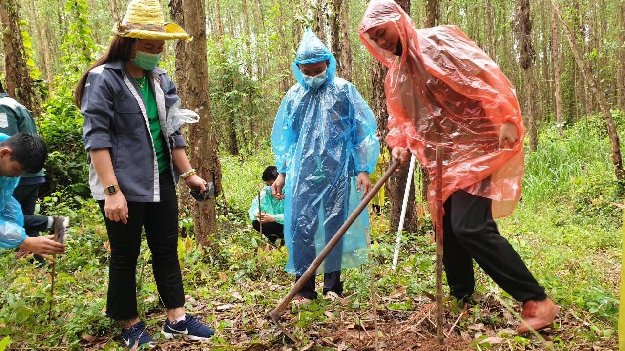 กลุ่มเห็ดฟางโรงเตี้ยแปลงใหญ่สระไม้แดงได้ร่วมกลุ่มกันขอพื้นที่ร่องกลางแปลงยูคาลิปตัส เพื่อประกอบอาชีพเพาะปลูกเห็ดฟางโรงเตี้ย คุณป้าบุญโรม หนึ่งในกลุ่มเห็ดฟาง เล่าให้ทีมงานฟังว่าสมัยก่อนตนเองและครอบครัว เป็นเกษตรกรปลูกข้าว ปลูกผักตามฤดูการ พอกิน พอใช้ ไม่เหลือเก็บ จากนั้นครอบครัวมีความคิดเพาะปลูกเห็ดจึงลองผิดลองถูกเรื่อยมาจนลงตัวที่การเพาะปลูกเด็ดฟางโรงเตี้ย จึงรวมกลุ่มกันในชุมชนจนมีสมาชิกกว่า 30 คน และส่งตัวแทนเข้าพบคุณณัชฐปกรณ์ ดำเนินชาญวนิชย์ เพื่อเจรจาขอพื้นที่เพาะปลูกเห็ดภายในป่าสวนกิตติ ซึ่งคุณณัชฐปกรณ์ ดำเนินชาญวนิชย์ ก็ใจดี อนุญาตให้กลุ่มเห็ดฟางเข้าใช้พื้นได้ ขอเพียงแค่ช่วยกันรักษาความสะอาดในพื้นที่ และอย่าใช้สารพิษ